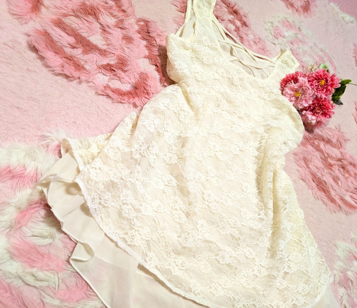 OZOC◆濁り◆白◆花柄&レース◆編み上げ◆サラサラ◆チュニワンピース 收藏