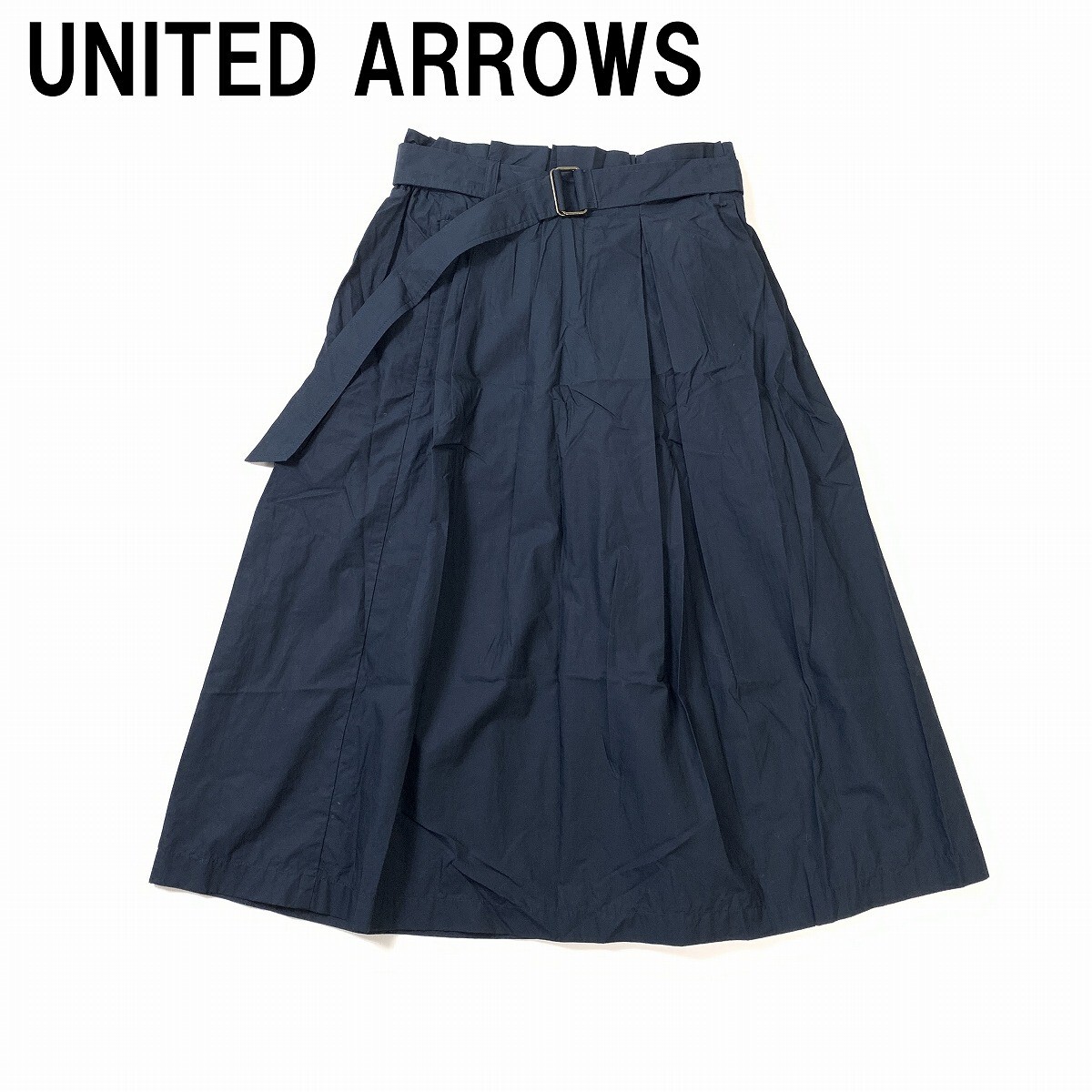 UNITED ARROWS ユナイテッドアローズ BEAUTY&YOUTH ビューティー&ユース ロングスカート ベルト付き フレア 紺 M相当 YC1174 收藏