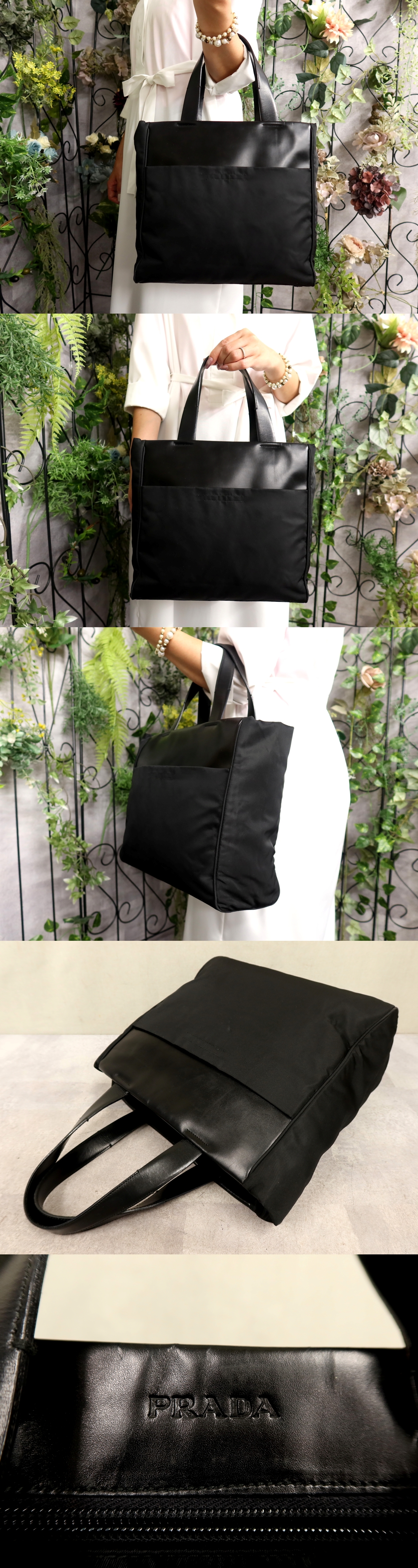 ●超美品●PRADA プラダ●ロゴ型押し●ポコノ ナイロン カーフ レザー 本革●ハンド バッグ●黒●シルバー金具●イタリア製●B5●Js61322 收藏