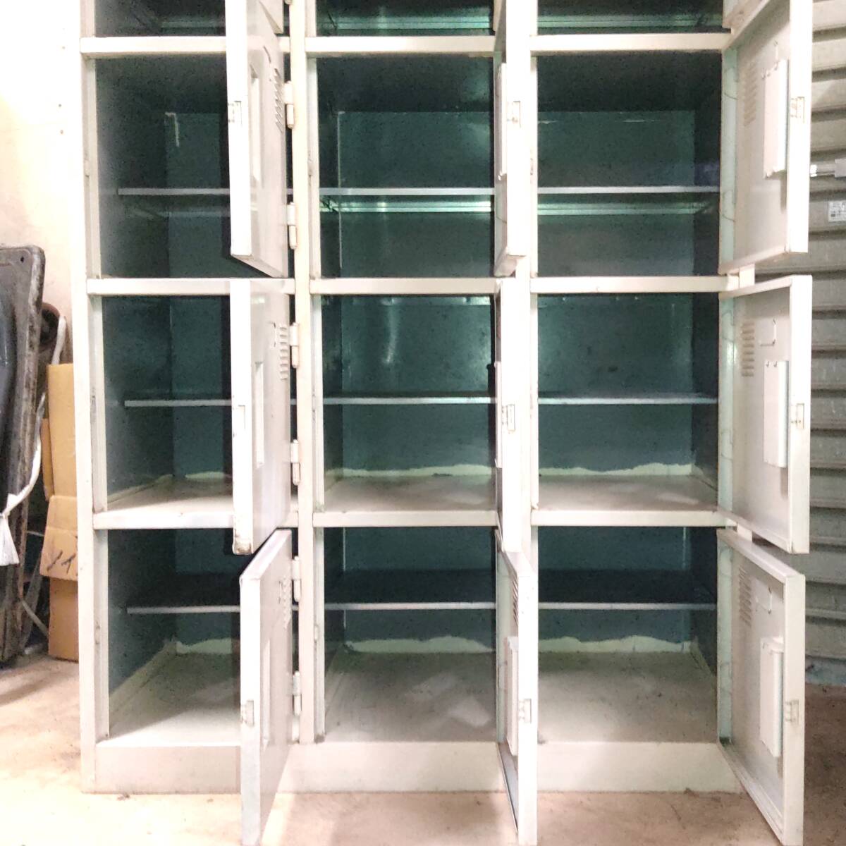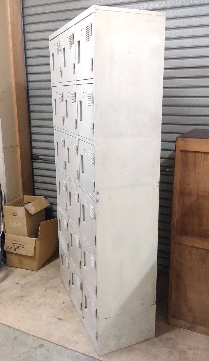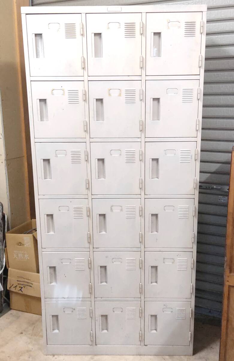 送11270~ 18人 上下 2段タイプ 約170cm×80cm シューズロッカー 扉付き 下駄箱 靴箱 スチール/鉄製 白 中古 手渡し 引取可 栃木/福島県発 收藏