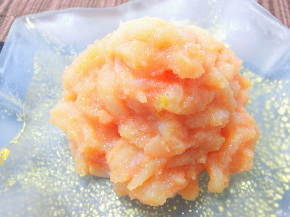 細切りにした柔らかいイカに、たっぷりの明太子を