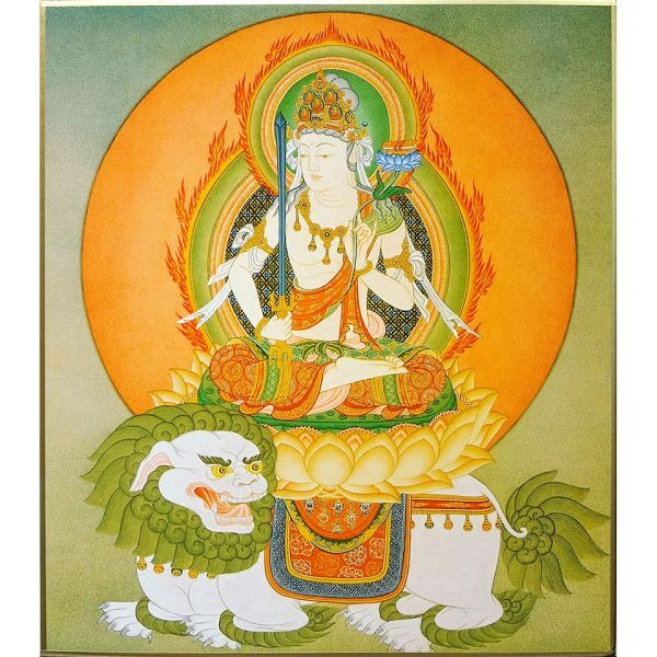 仏画 色紙額 「文殊菩薩 」 エンジ額 複製画 新品 仏画 仏教美術 仏間に。仏事の飾りに。卯年の守り本尊 厄除け 学業成就 【84020】 收藏