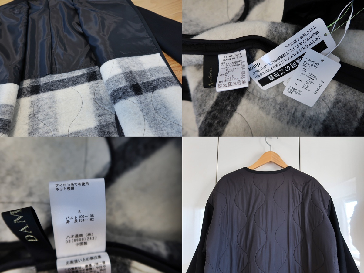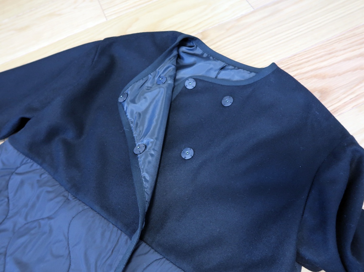 未使用■ダーマコレクション■大きいサイズXL相当3■イタリア素材スライバー使いキルト&ウールメルトンコート■黒■定価3.9万 收藏