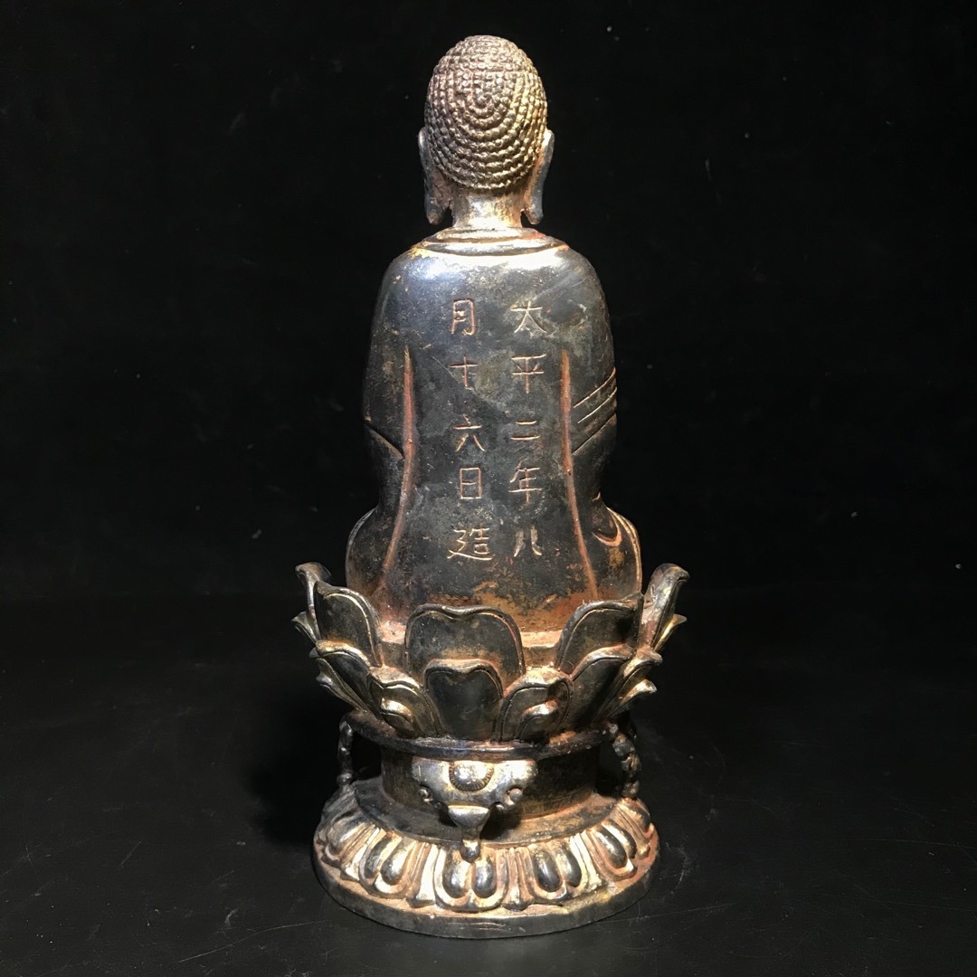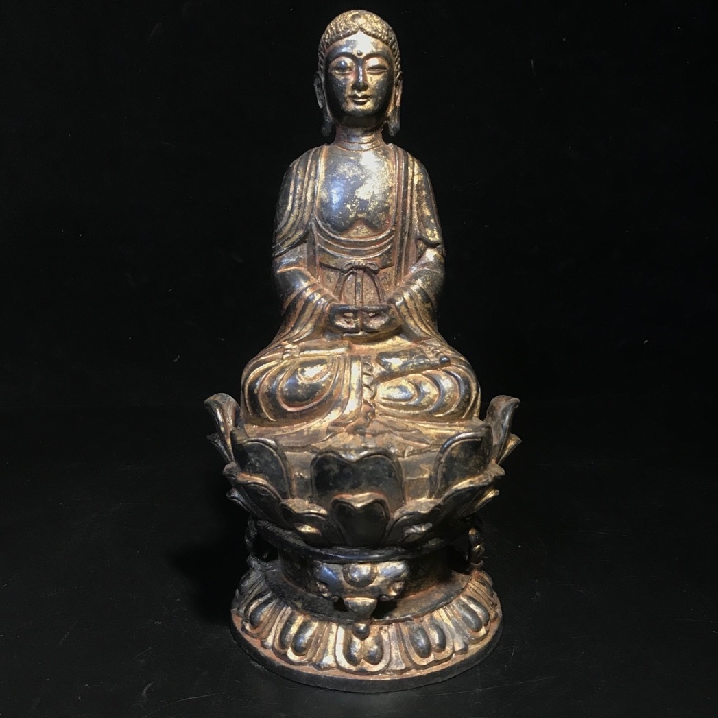 仏像 *珍品旧蔵* 明代 蒔絵朱砂彩坐釈迦像 の置物 奉納されていた 供養品 銅製品 銅器 極細工 唐物 中国古玩 骨董品 古美味 ji10.25 收藏