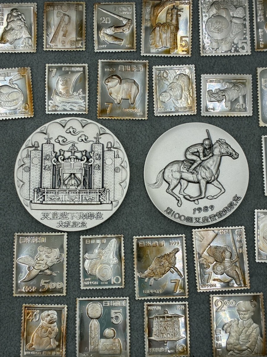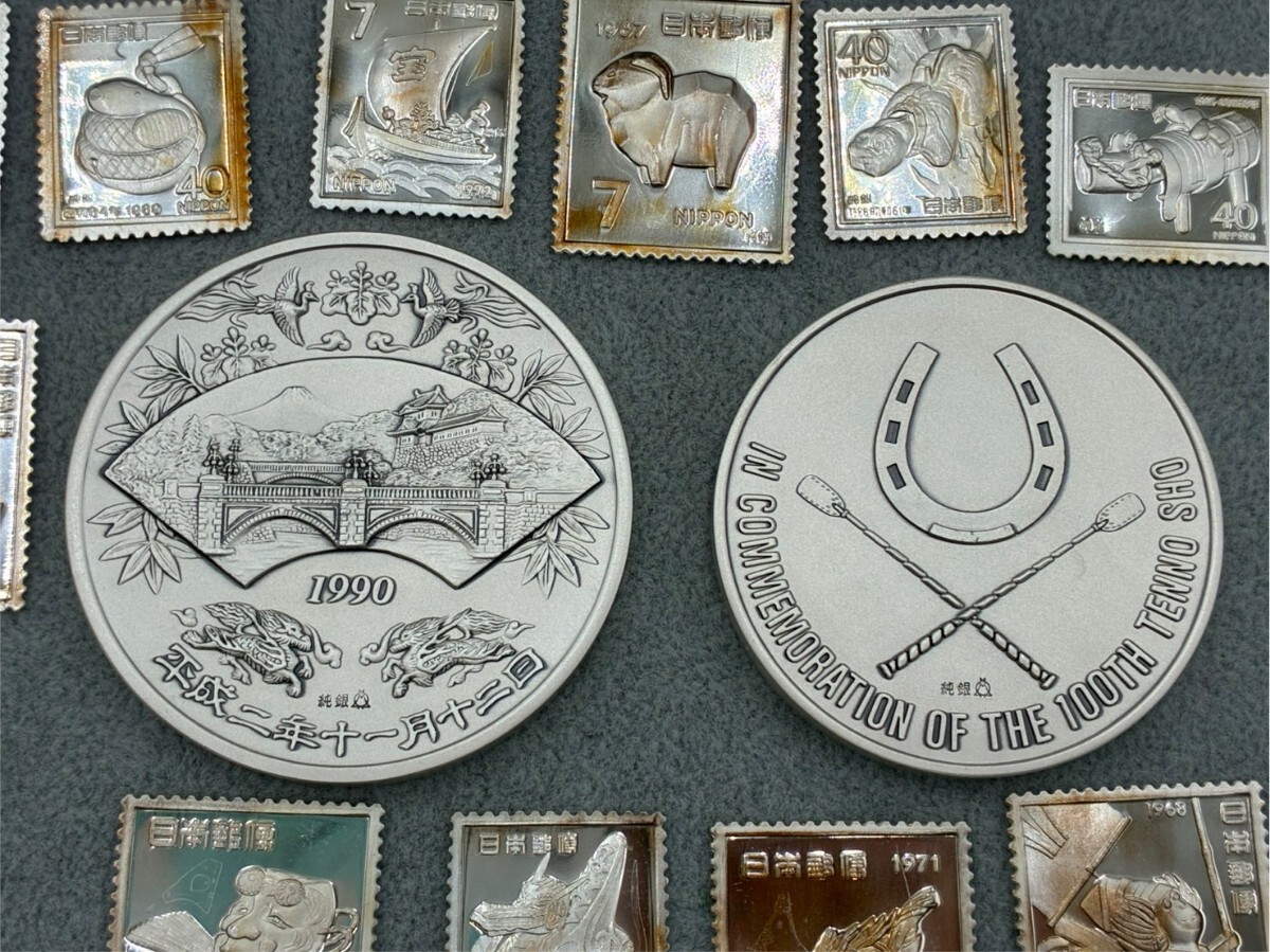 1円スタート 純銀 まとめ 天皇陛下御即位大礼記念 1990年 天皇賞競走記念 1989年 記念切手 額面1484円 総重量約288g AF1024-12 收藏