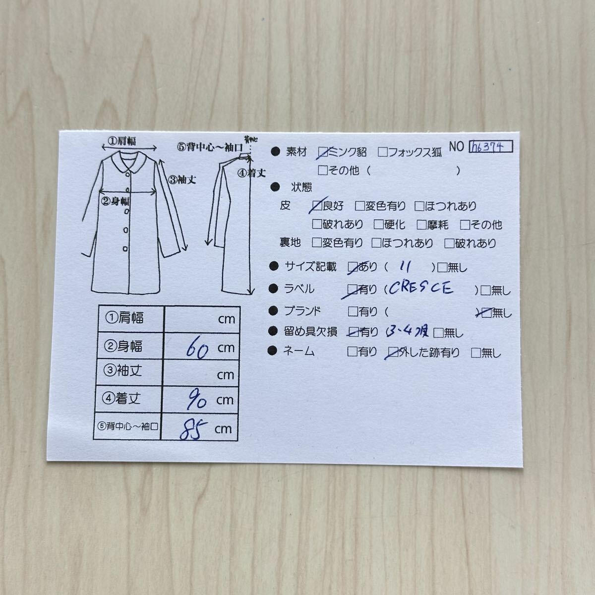 【貂商】h6374 CRESCE シェアードミンク デザインコート ハーフコート セミロング ミンクコート 貂皮 mink身丈 約90cm 收藏
