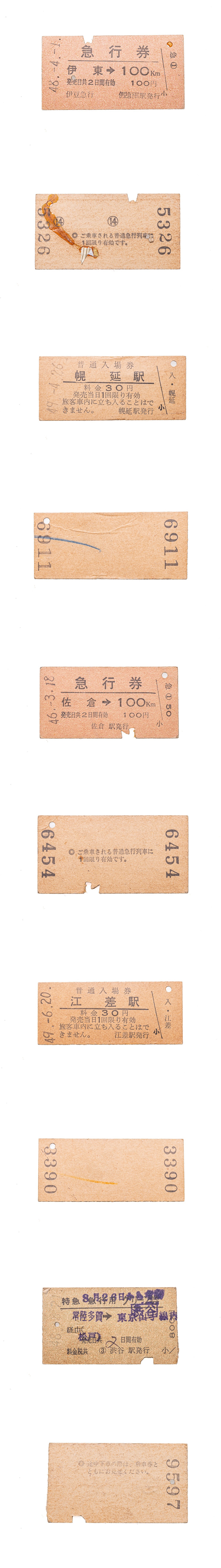 S-613 【国鉄硬券】(17)急行券など 古い切符10枚セット◆昭和レトロ 鉄道グッズ◆ ランダム コレクター放出品 收藏
