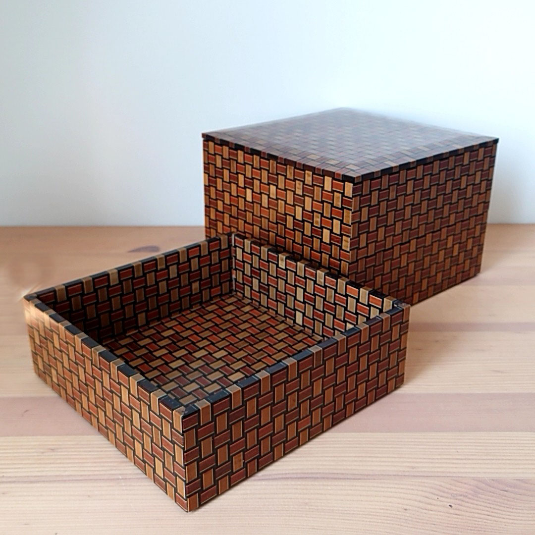箱根寄木細工 無垢材三段重箱 です。