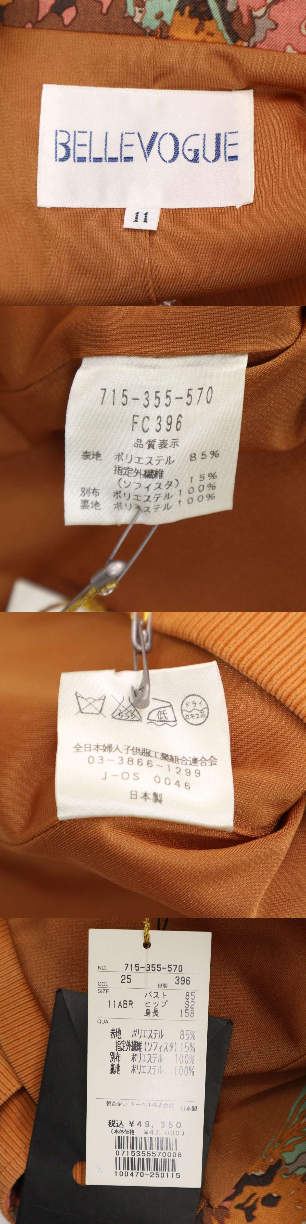 【新品 未使用】 BELLEVOGUE ベルヴォーグ 秋冬★ 裏地花柄 ジップアップ ブルゾン Sz.11 レディース 收藏