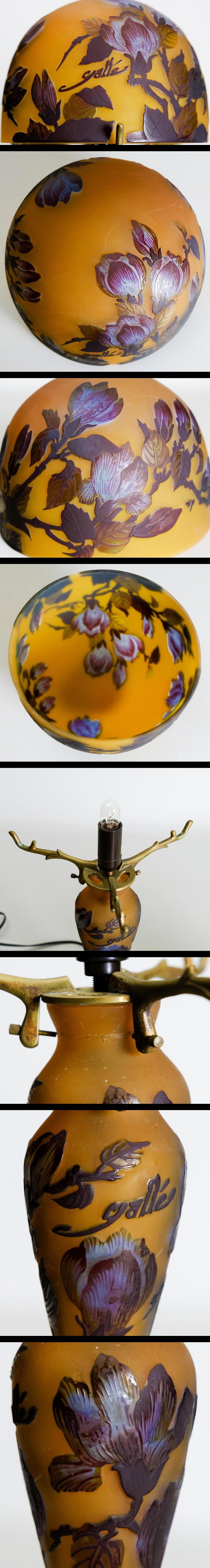 【WISH】ガレ Galle「花絵ランプ」 大型作品 ガラス工芸 高さ44cm 2.42kg ◆花文様 #25126018 收藏