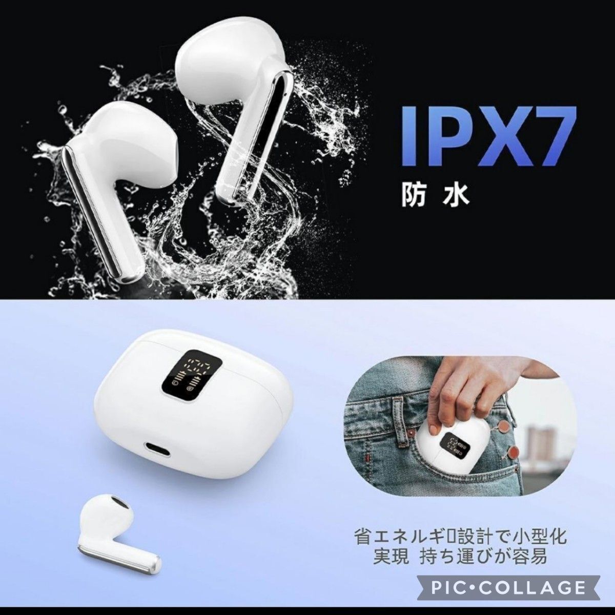 Bluetooth5.3 ワイヤレスイヤホン高音質 IPX7防水 自動ペアリング 充電ケース付き iPhone Android 高性能 ノイズキャンセリング 白 收藏