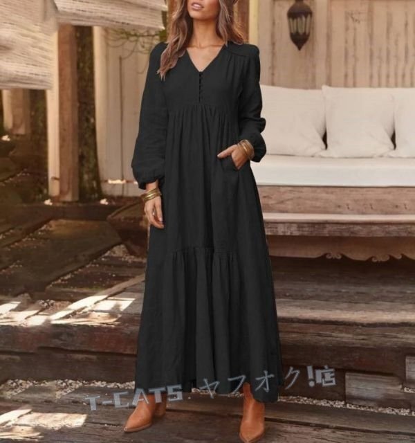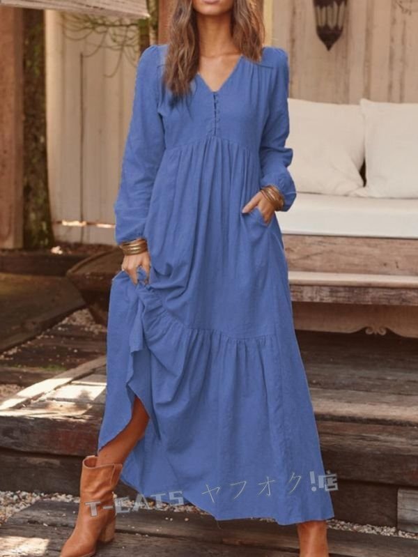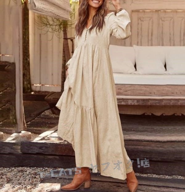☆新品秋 人気品 お出かけ お呼ばれ ワンピース 無地 綿麻風 ロングワンピース マキシ丈ワンピース 二次会 飲み会 グレー 收藏