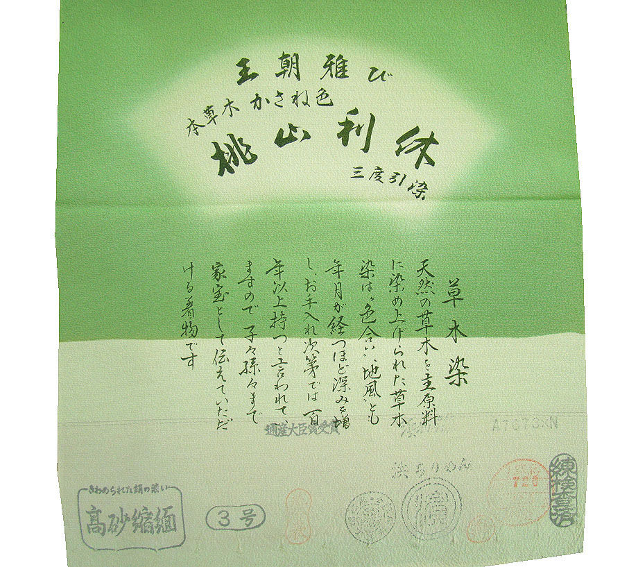 | 項 目 | ★美品 お茶事に最適 極上縮緬地 草木染 無地(正絹)仕立上り<M940>★ | ||||||||||||