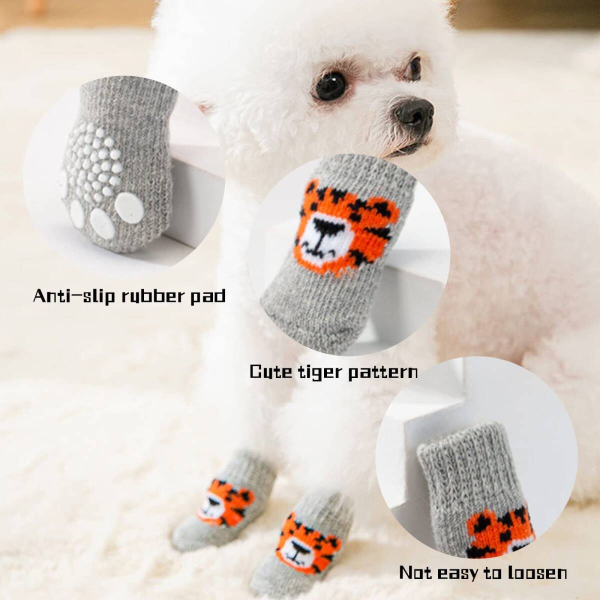 ペット 靴下 柔らかい 肉球保護 ソックス 防寒 犬用 舐め防止 トラ 小型犬 中型犬 可愛い 室内 4個セット 室外 滑り止め 收藏