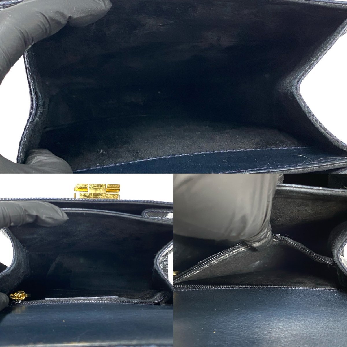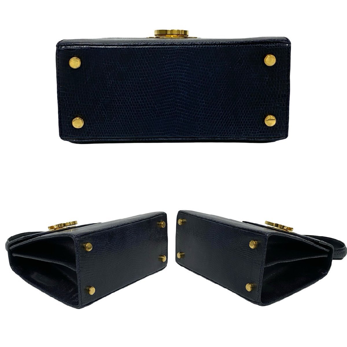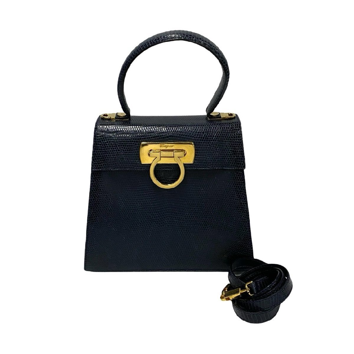 極 美品 Salvatore Ferragamo サルヴァトーレフェラガモ ガンチーニ リザード レザー 本革 2way ハンドバッグ ショルダーバッグ 紺 24272 收藏