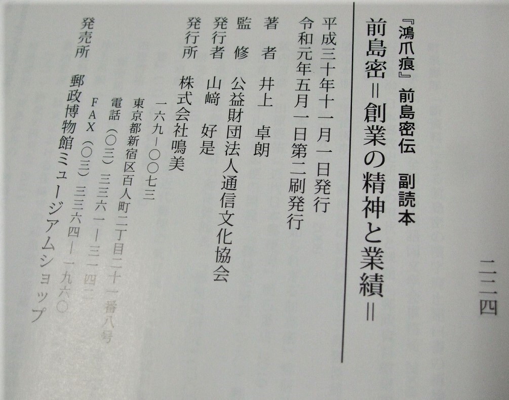 蒐集資料本、鳴美 「前島密・創業の精神と業績」1冊MJS05。井上卓朗著、未使用品 收藏