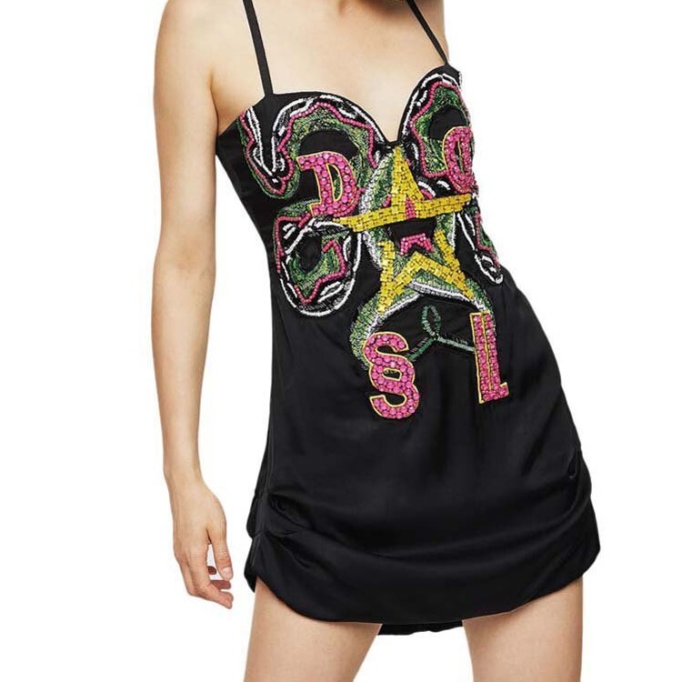 ディーゼル レディース ワンピース ドレス ひざ丈 ブラック XXSサイズ キャミソール ビジュー ドレス DIESEL ブランド D-CREME 收藏
