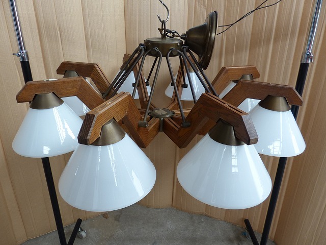 yamagiwa(ヤマギワ)ビンテージ|シャンデリア 8灯 Φ100㎝|glass/wood ミッドセンチュリー|検フランクロイドライト 收藏