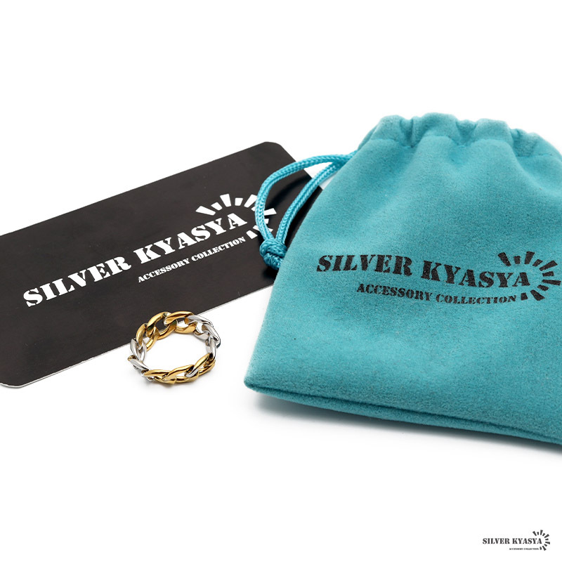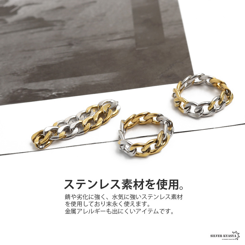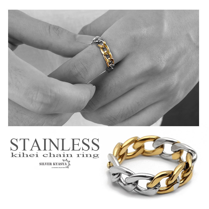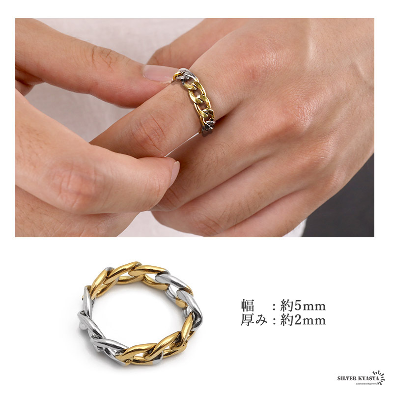 (23号) 喜平チェーンリング ステンレス ゴールド シルバーミックス 指輪 チェーンモチーフ 喜平系 幅5mm 收藏
