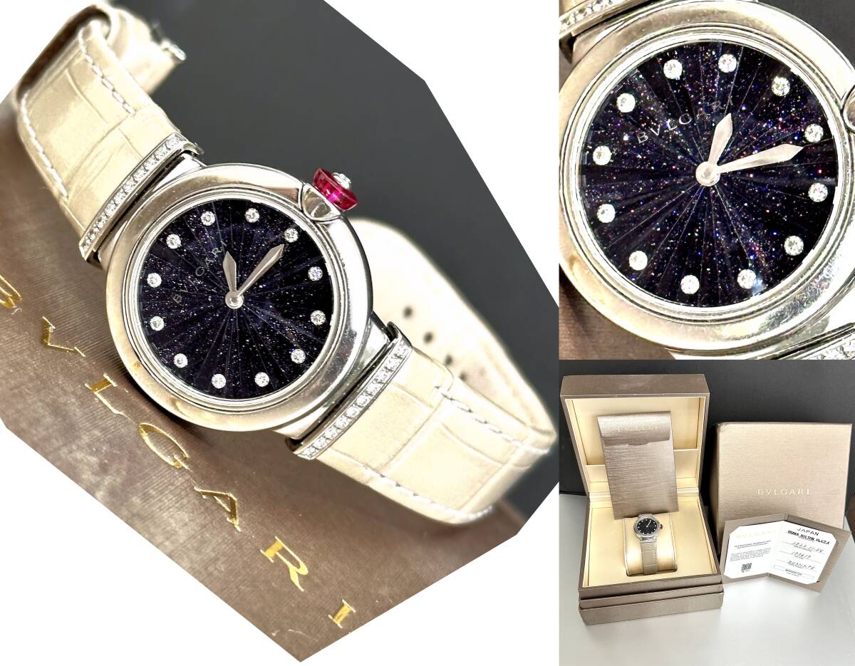 美品 国内ギャラ付き 定価88万 BVLGARI ブルガリ ルチェア 33P ダイヤ 自動巻き 時計 夜空 星 28mm 名作 希少 レア 收藏