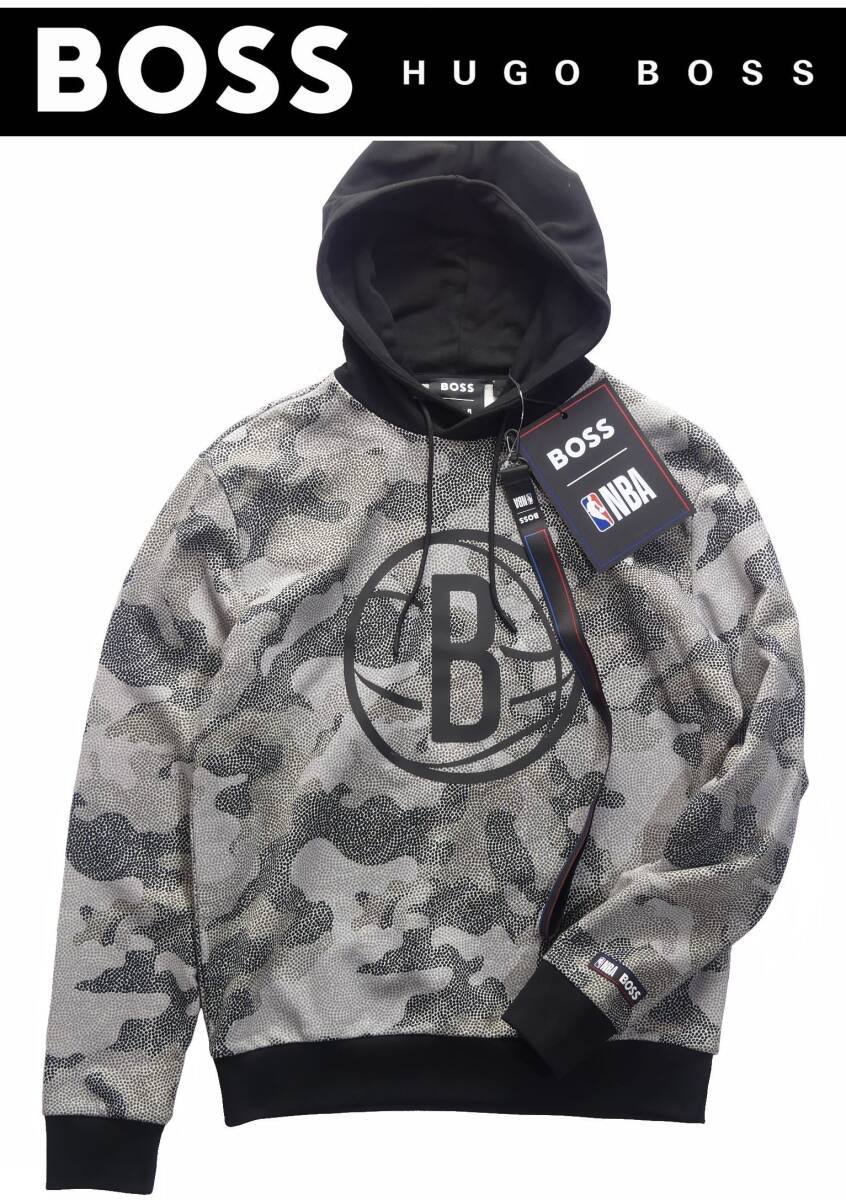 HUGO BOSS/ボス 大人シックなグレーカモ。チープに見えない上質ジャージNBAフーディートレーナー ヒューゴ・ボス直営店購入の正規品新品です