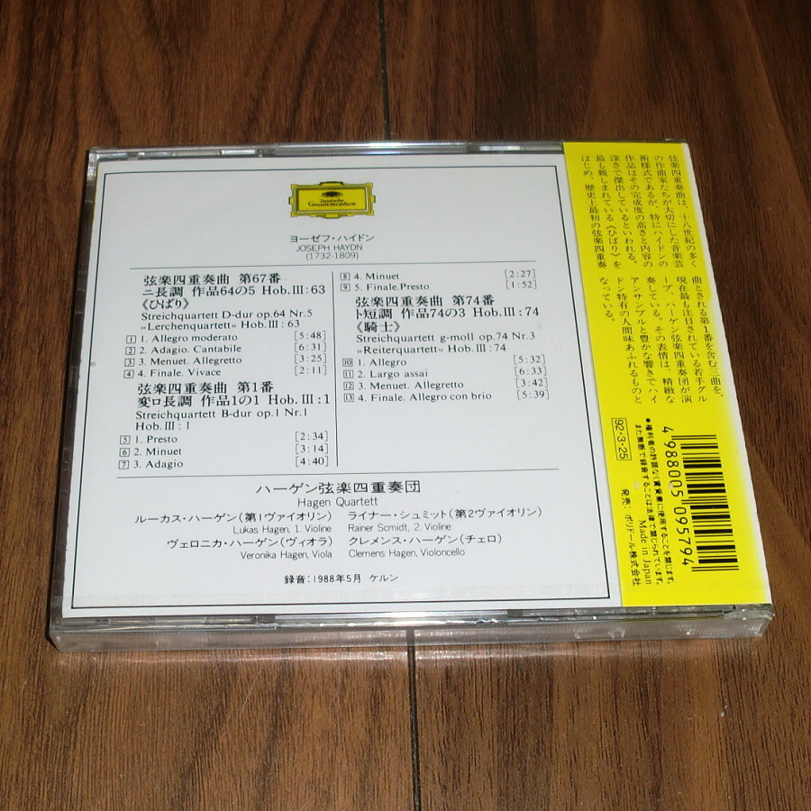 ◇新品未開封!CD「ハイドン 弦楽四重奏曲「ひばり第67番」「騎士第74番」第1番 ハーゲン弦楽四重奏団」 收藏
