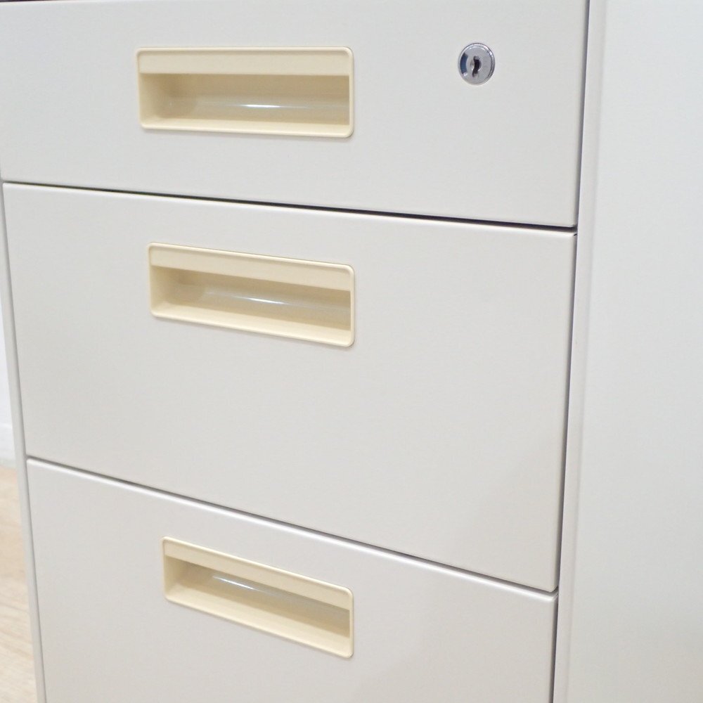 プラス PLUS 3段ワゴン AS-F046SC-3 ホワイト 収納ワゴン デスクワゴン 引き出し サイドキャビネット 袖机 鍵無 EG18999 中古オフィス家具 收藏