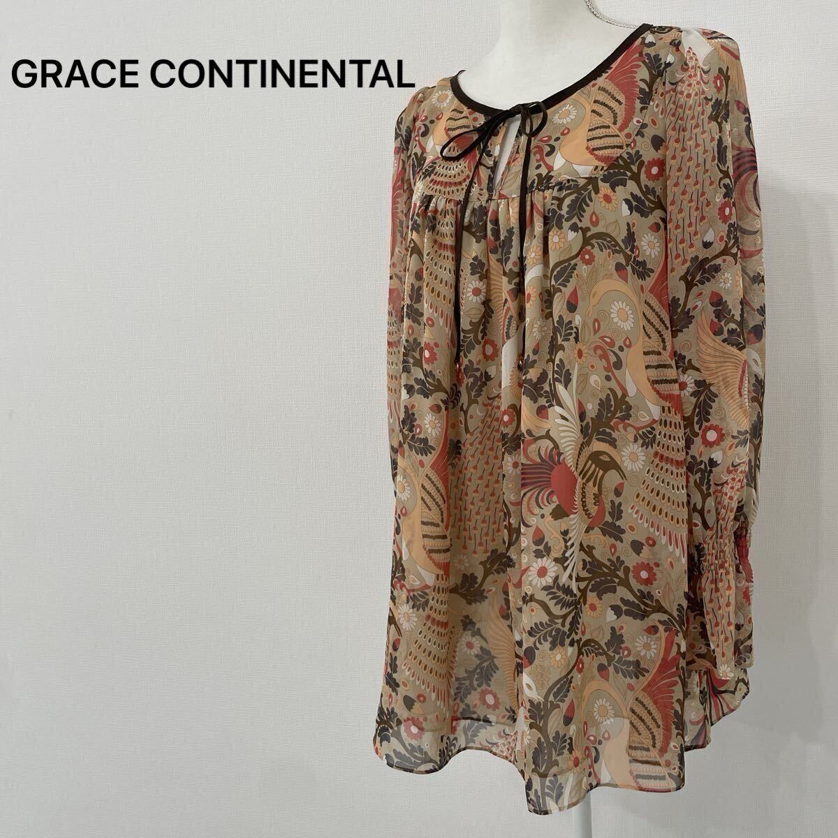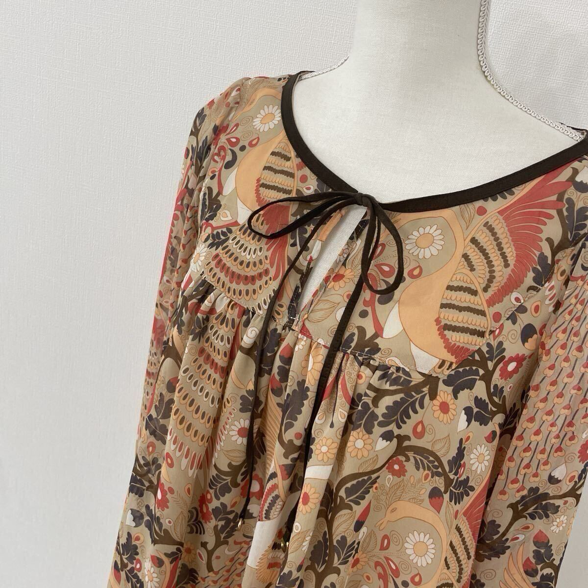 【877】GRACE CONTINENTAL グレースコンチネンタル トップス チュニック フリル 総柄 花柄 ゆったり 日本製 オレンジ レディースL相当 收藏