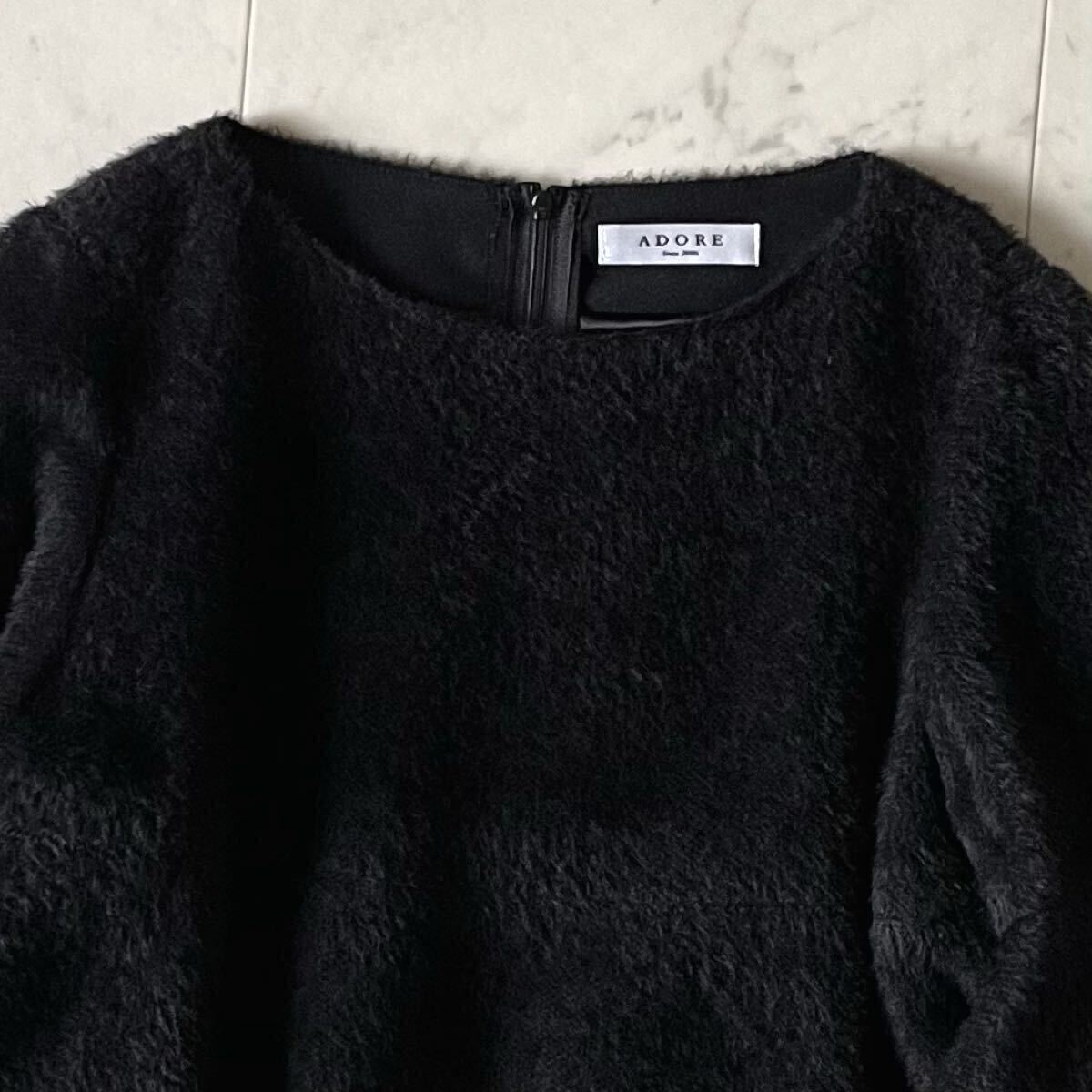 美品♪ADORE アドーア アルパカ羊毛フレアスリーブプルオーバー 38 M ブラック 黒 7分袖 日本製 トップス レディース 收藏