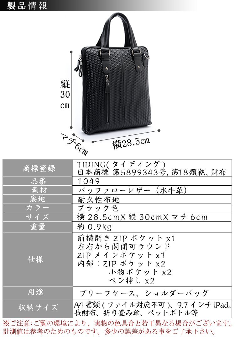 TIDING メッシュ型押し 2WAY メンズ ショルダーバッグ 本革 バッファローレザー ビジネスバッグ A4 通勤 書類かばん 黒 潮牛 收藏