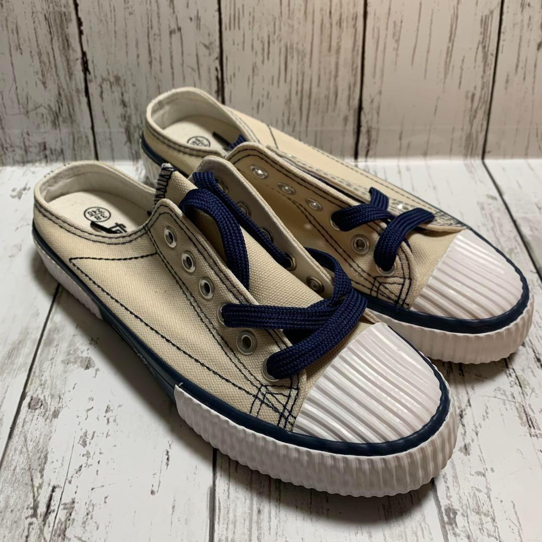スニーカー 24.5cm ライトベージュ かかとなし サンダル スリッパ 屋外 スリッポン 滑り止め 室内シューズ くつひも 靴紐 收藏