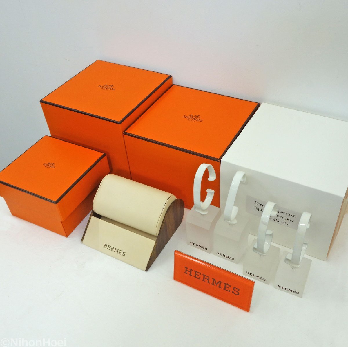 未使用/送料無料 10点セット ◆ エルメス 腕時計 木箱 箱 ◆ 展示品 ディスプレイ用品 ホルダー アクリルスタンド ◆ HERMES まとめて 收藏
