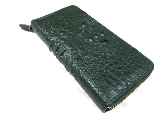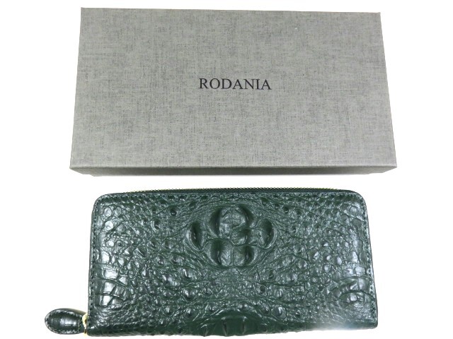 MC 新品 RODANIA ロダニア 本物 クロコダイル ラウンドファスナー 長財布 グリーン 緑色 カードポケット多 本革 皮革 レザー 收藏
