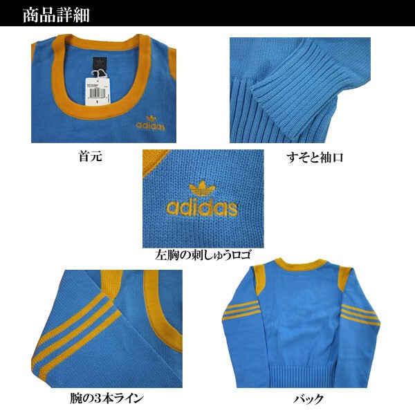 adidas(アディダス)レディース Originals Sport Sweater・Blue(M)です。 ■素材 コットン100%。 ■サイズ 身幅約46cm、着丈約47cm、袖丈約57cm。 ■特徴 ショルダーの太いラインと、腕の3ラインがくっきりと爽やかなオールドカレッジ風セーター。Longスリーブ、袖やウエストの大き目のリブはすっきりとしたシルエットを提供し、スカートにもパンツにも似合います。ロゴ刺繍。 モデル身長160cm Sサイズ着用 | ||||||