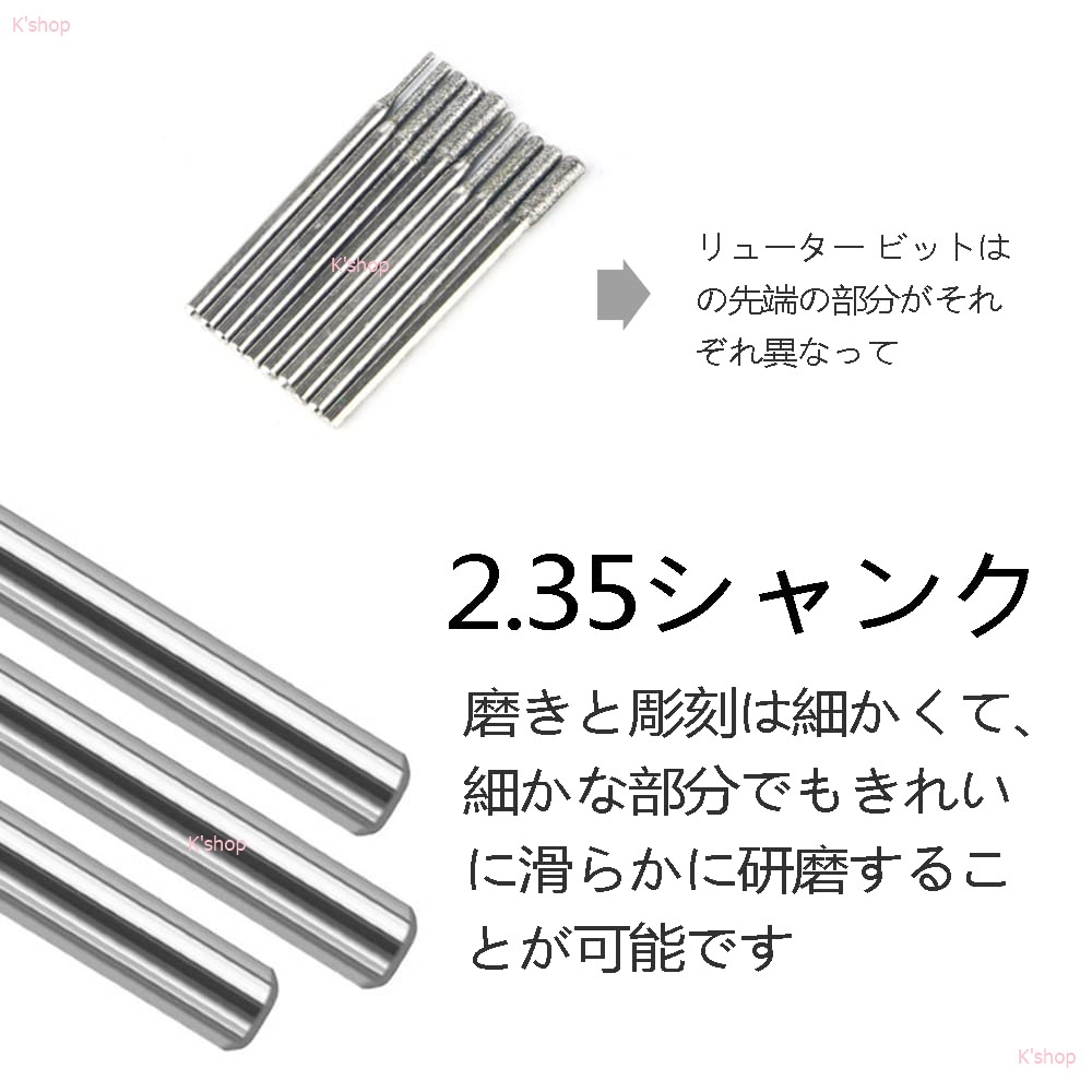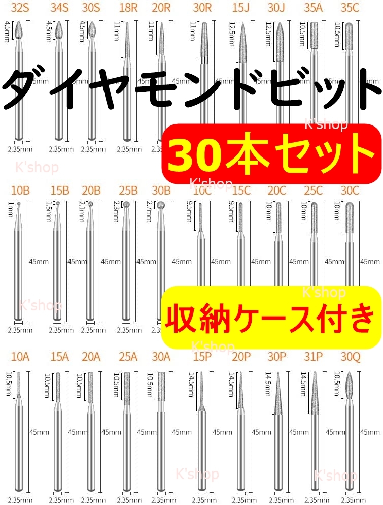 ミニルータービット ダイヤモンドビット リュータービット 2.35mm軸 超硬バー 研磨ビット ペンルーター用 30本入り 切削 研磨用 DIY工具 收藏