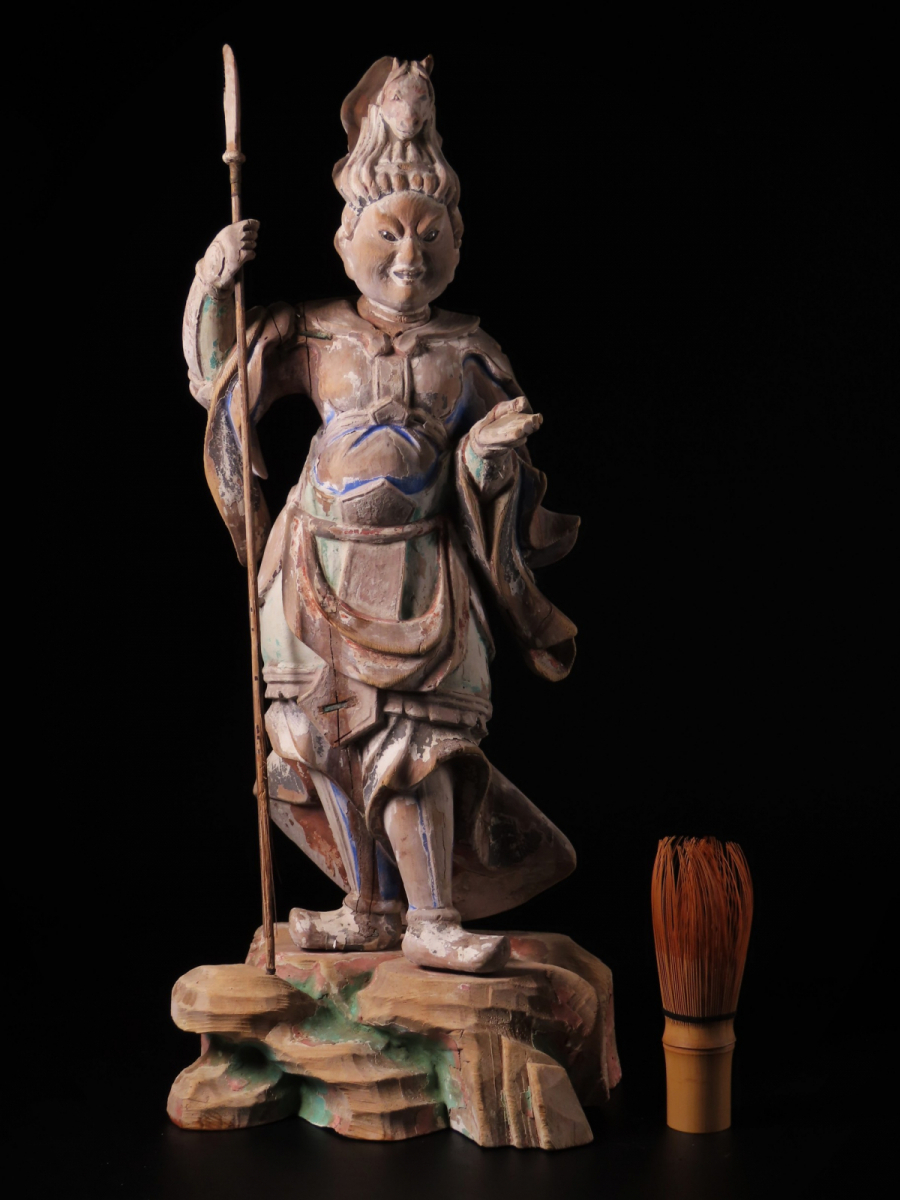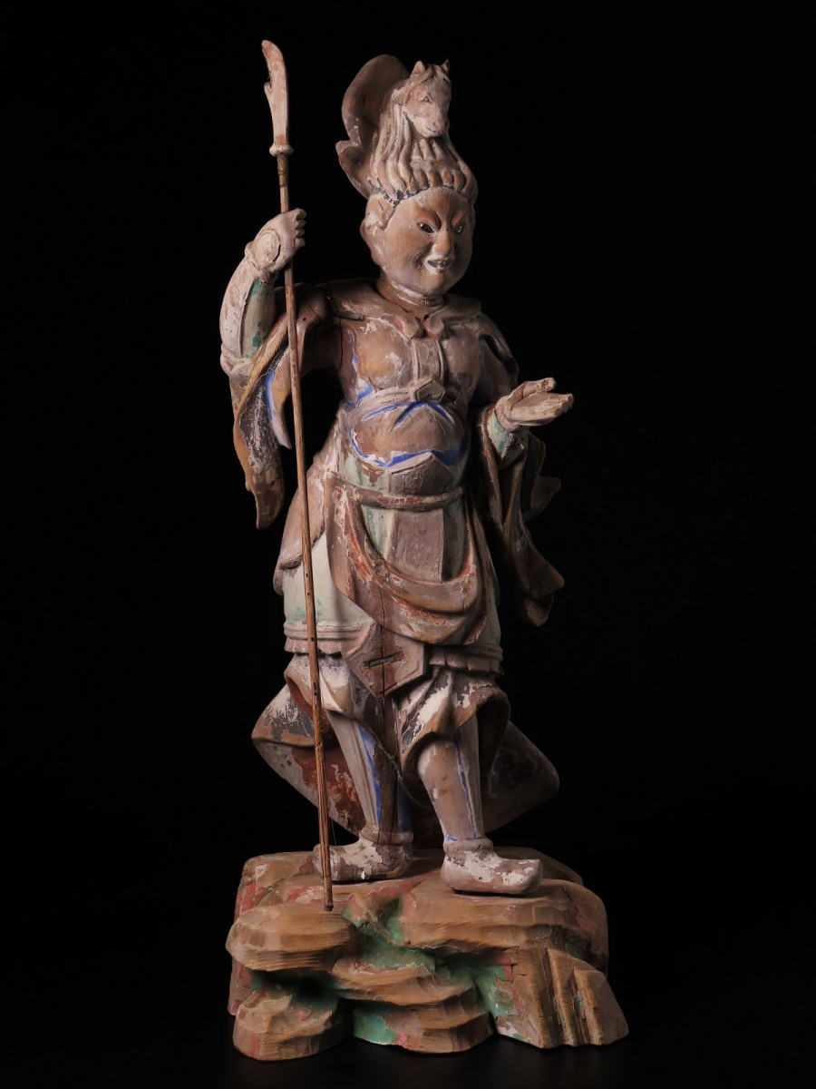| 【ONE'S】時代仏教美術 古仏 木彫彩色 玉眼 十二神将像 珊底羅大将立像 午神 高44cm 仏像 置物 東洋彫刻 古美術品 | |||
