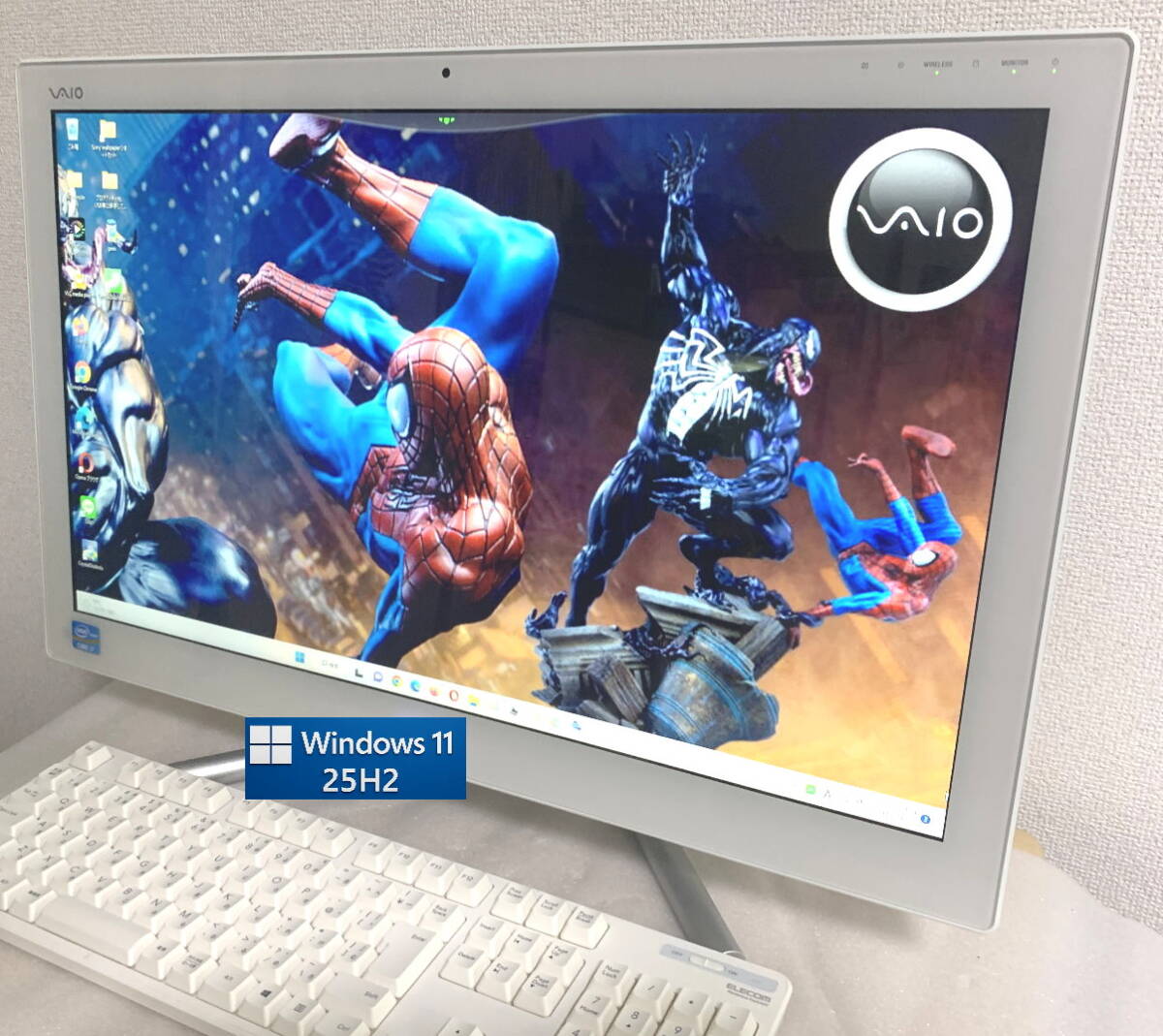各種設定済みですので、すぐお使いいただけます。 本体、アルコール除菌スプレーで清掃済み。 内部ファン清掃、CPU、GPUグリス塗替え、マザーボード電池交換済み。 Windows11、25H2最新版へのアップデート済み Microsoft Edge、Google Chrome、Firefox、Opera、LINEインストール済みです。wifi内蔵、無線でインターネットに接続可能です。 24インチワイド、SONYならではのきれいな画質で地デジ・BS・CS放送を楽しめます。  Windows8→Windows10→Windows 11pro 最新バージョン25H2までアップデートしました。 CyberLink PowerDVD 19 & VLCメディアプレイヤー (3D対応機種ではありませんが、CyberLink PowerDVDやVLCメディアプレイヤーでアナグリフメガネで一部の3D動画を楽しめます。簡易ペーパーアナグリフメガネ3枚付き) 映像ディスク付 モンスター VS エイリアン、ジェームズ・キャメロンのタイタニックの秘密 その他、3Dのテスト視聴に3Dサンプル動画付き。 本体、無線マウス、無線キーボード、純正リモコン、純正電源コード、各種USB、他、映像ディスク、簡易アナグリフ式メガネの出品となります。 (無線キーボード、マウスはVAIOと相性が良い信頼のエレコム製PlayStation3&PlayStation4対応確認済みの新品です。) B-CASカードは本体にセットされています。 安心バックアップ 1. リカバリー領域あり。 2.本体から作成したメーカー出荷状態に戻せるリカバリーディスク付き。(Windows 8) 3. クローンSSD・HDD作成ソフトをインストール済みですので、 予備のクローンSSDを作成すれば、いざという時、リカバリー作業なしで、SSD交換のみでパソコンが復活します。 高速安定SSD 2TB メモリ8GBから16GBに増設済み。  主なソフト Microsoft Office 2024 CyberLink PowerDVD 19 CyberLink PowerDVD21 CyberLink PowerDVD BD VLCメディアプレイヤー LINE Adobe Photoshop Elements 11 クローンSSD・HDD作成ソフト 他、SONYプリインストールソフト |