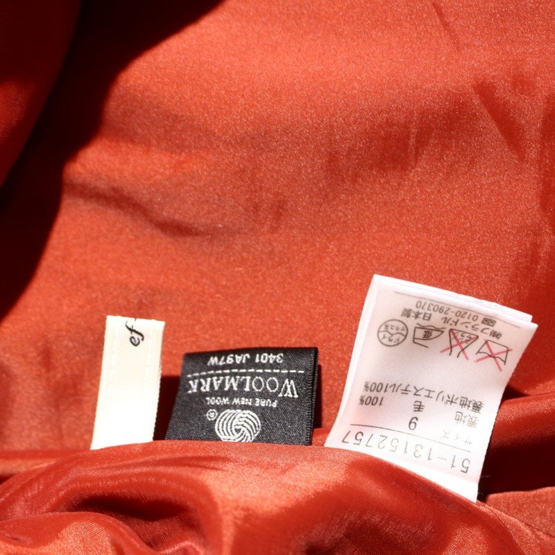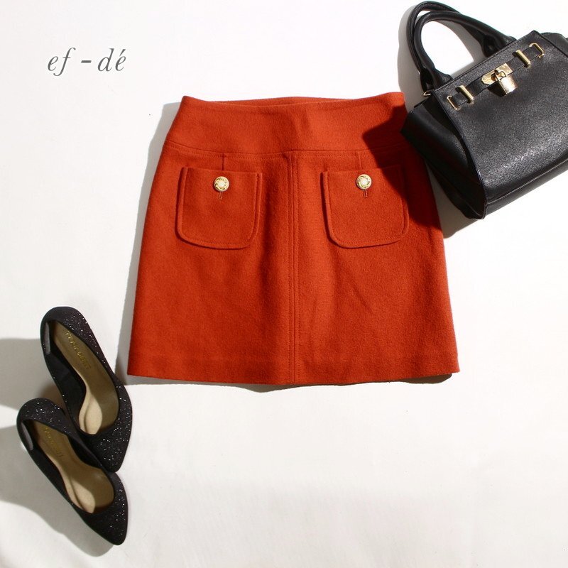 美品 エフデ ef-de 株) フランドル 秋 冬 ブーツコーデ 毛100% 台形 ウールスカート 9号 オレンジ レトロ 收藏