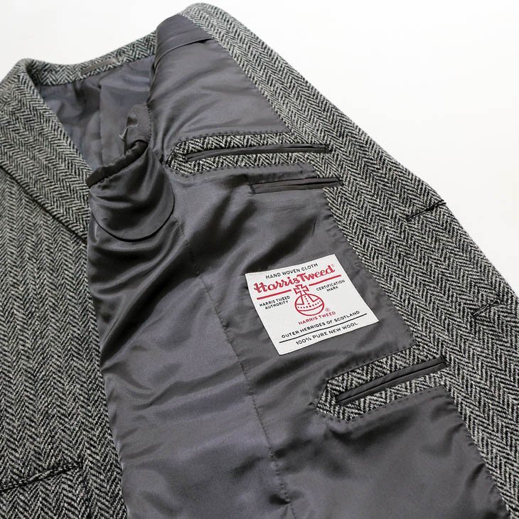 SALE 新品 秋冬 英国 ハリスツイード Harris Tweed やや淡系 グレー杢 ヘリンボーン杉綾織 2つボタン ジャケット BB6 收藏
