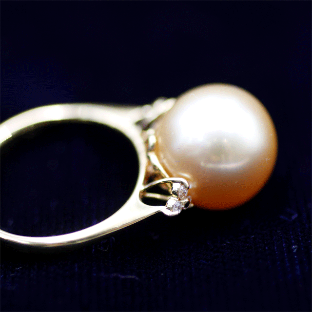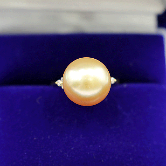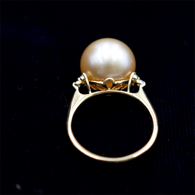 K18 白蝶養殖真珠 ゴールデンパール 指輪 リング FD0.08ct 12.5mm 12号 收藏