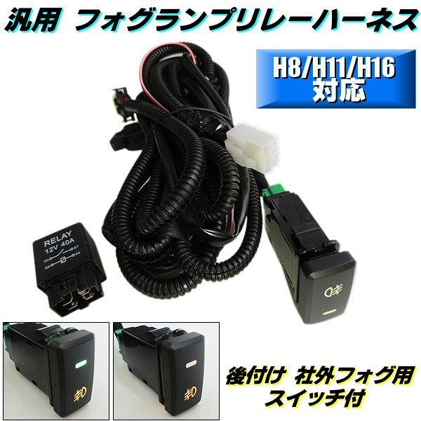 汎用 トヨタ フォグ配線 HID LED H8 H11 H16 フォグ リレー ハーネス 社外 後付け 緑 スイッチ付 12V アルファード ハイエース 他 A 收藏
