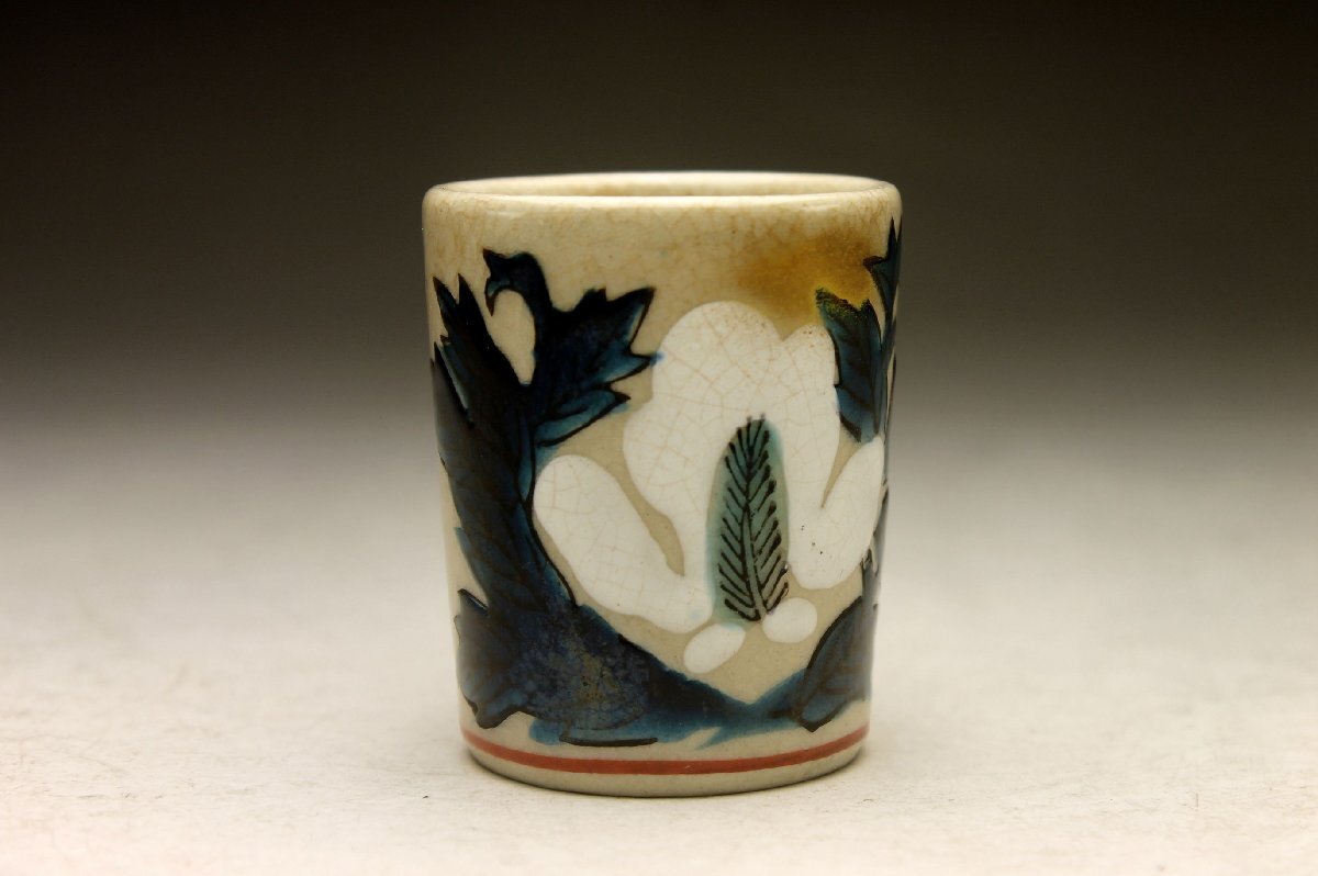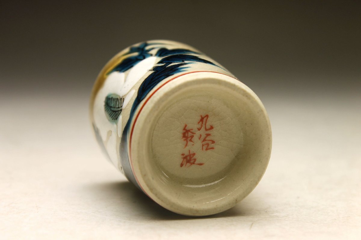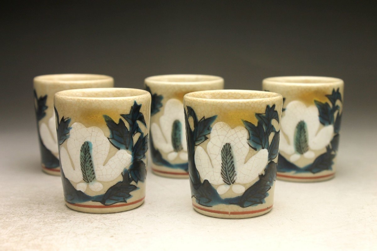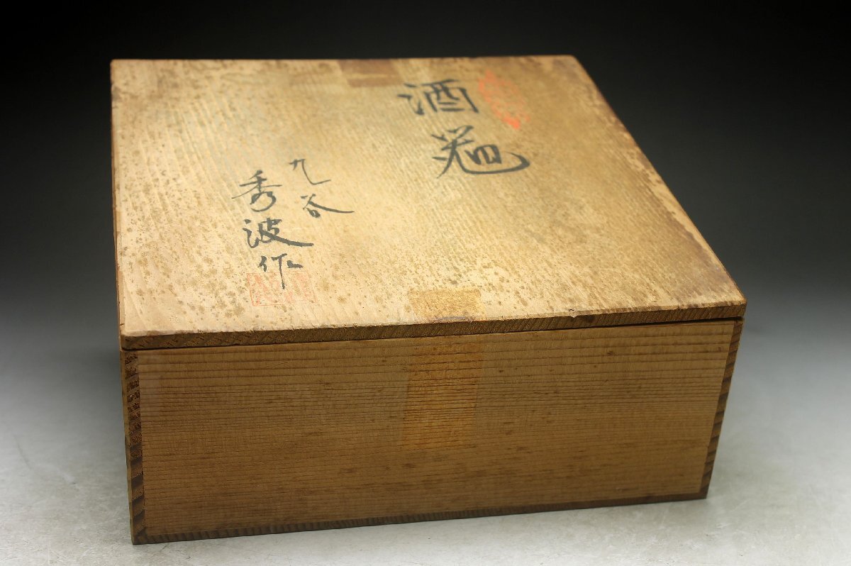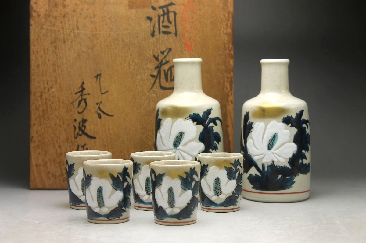 【余韻】 九谷焼 秀波銘 色絵木蘭文 酒器セット(7点)★徳利2点 盃5客 無傷美品 共箱<同梱可> 收藏