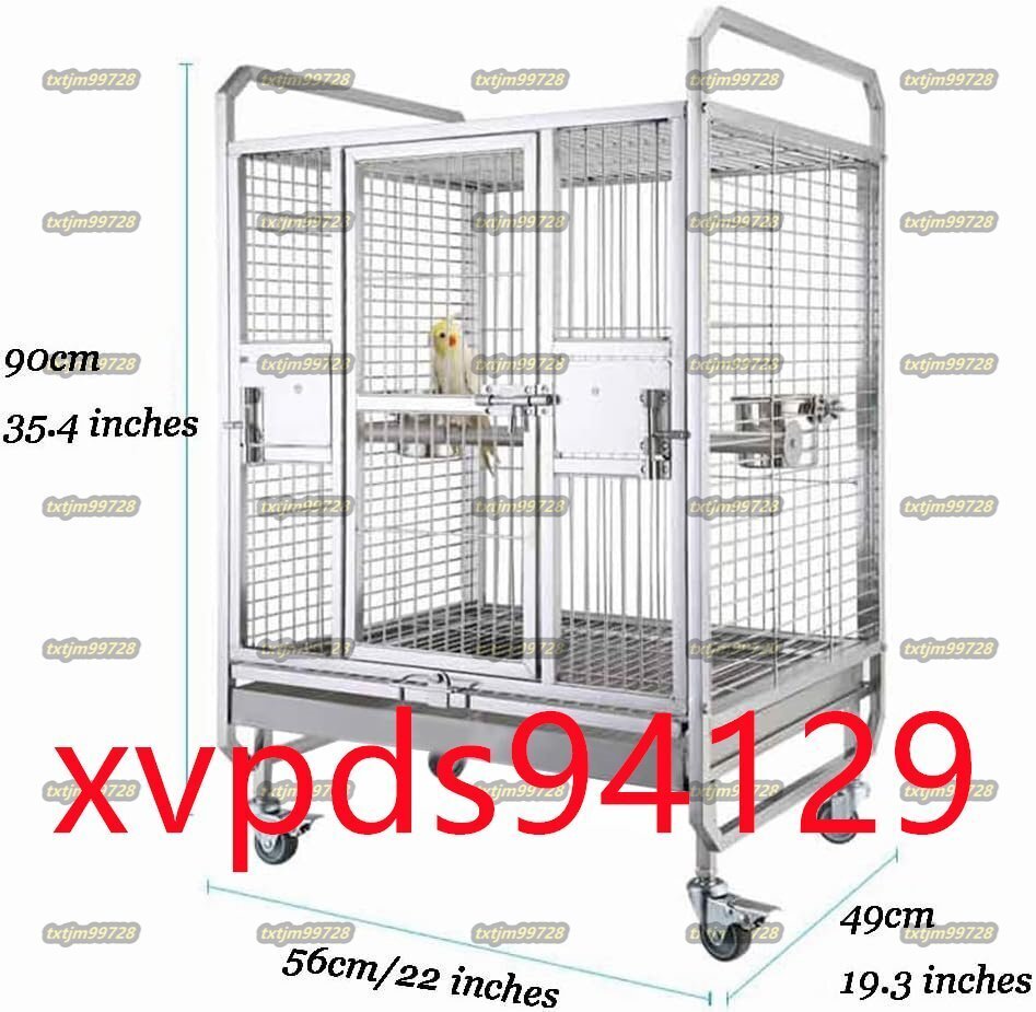 鳥かご・ケージ 豪華な大型オウムケージ、 中庭鳩繁殖ケージ、 正方形のステンレス鋼の鳥かご、 キャスター付き (56*49*90cm) 收藏