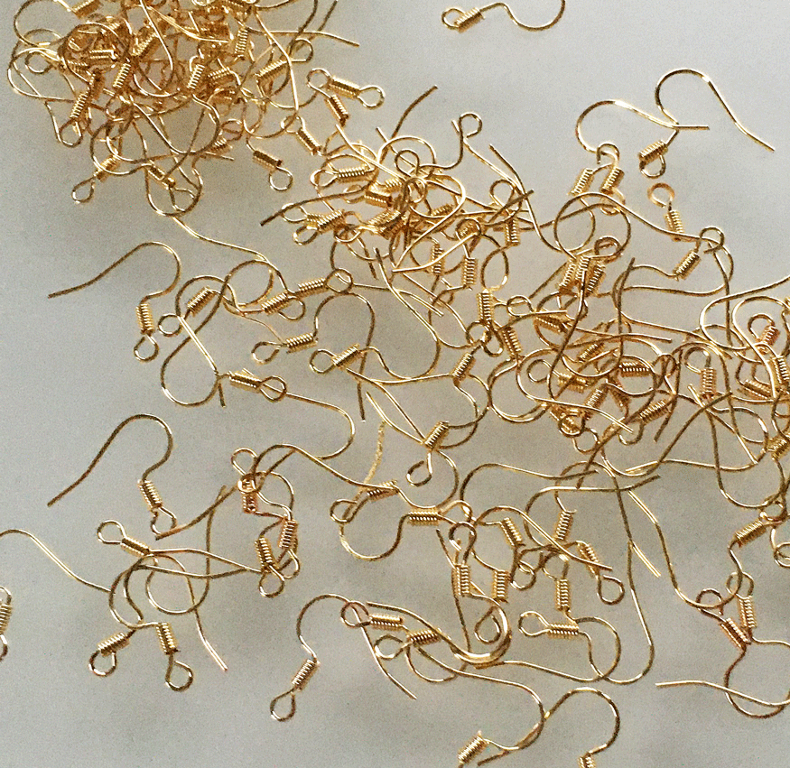 【大口特価】金具・ピアスフック ボール無し 金色 300個(150ペア)で300円 收藏