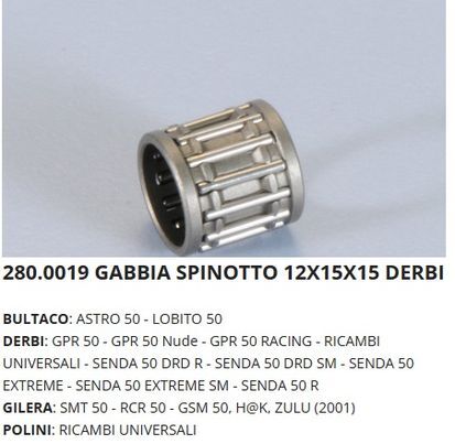 POLINI 280.0019 ベアリング(ピストンピン) DERBI SENDA 12x15x15 (10015) 收藏