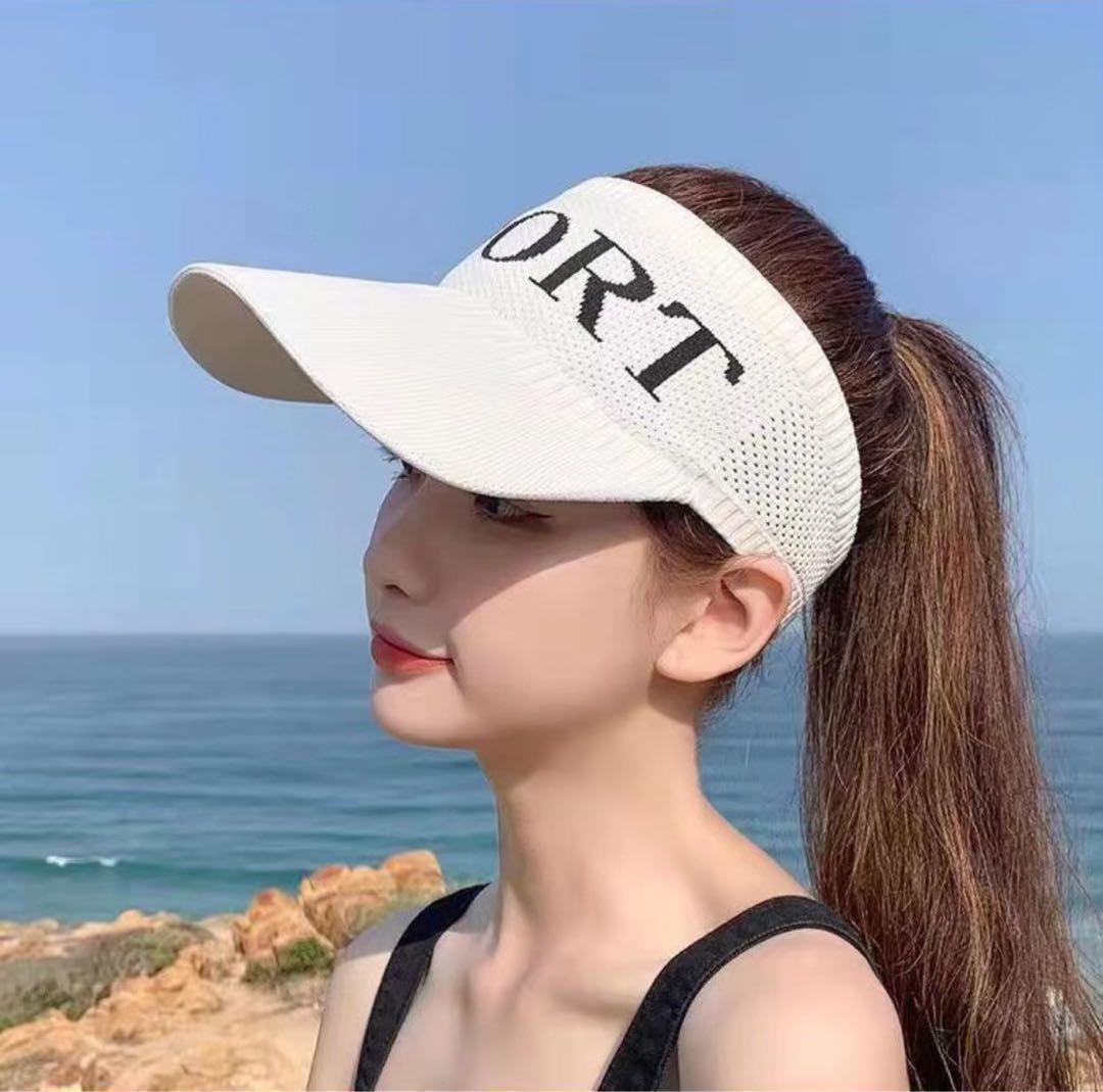 サンバイザー 紫外線対策 UVカット 吸汗 ニット ゴルフ テニス 自転車 白 收藏