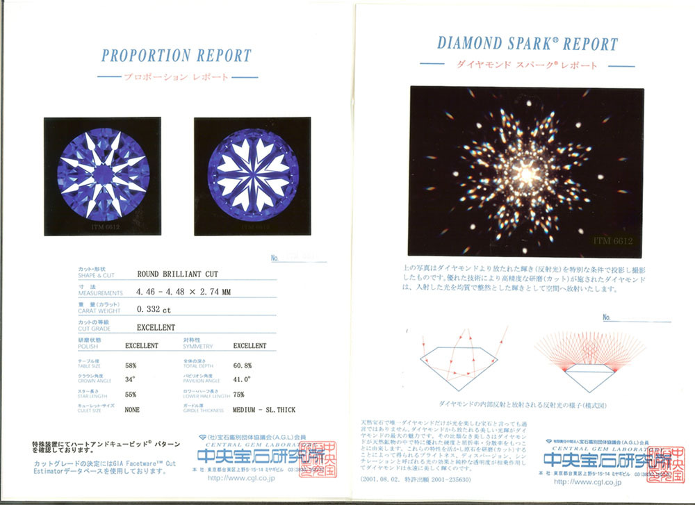 中央宝石研究所 3EX H&C ・DS付鑑定書二冊 |
