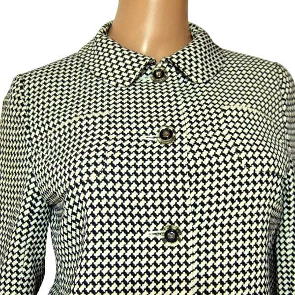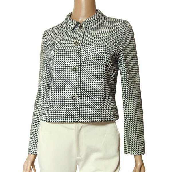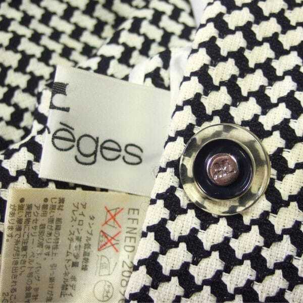 美品/クレージュ courreges ステンカラージャケット 小さい 7号 S 相当 古着 黒 白 レディース 春 秋 アウター 毛混 ショート丈 パール調 收藏