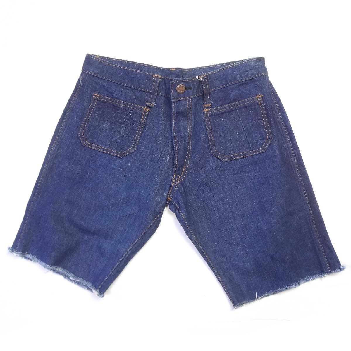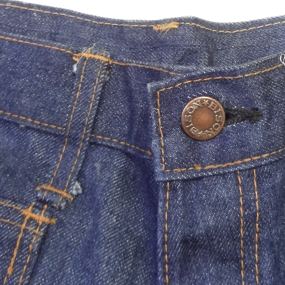 バイソンBISONの70年代製タロンジッパーデニムショートパンツ、実店舗の店頭展示品を一度洗濯しただけの未使用品、綿100%、ハーフパンツ