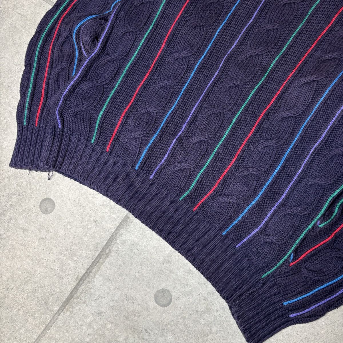 ヴィンテージ 3Dニット 90s 立体 ケーブル編み COOGI系 ストライプ セーター 肉厚 下北系 ナス紺 総柄 一点物 ネイビー L 收藏